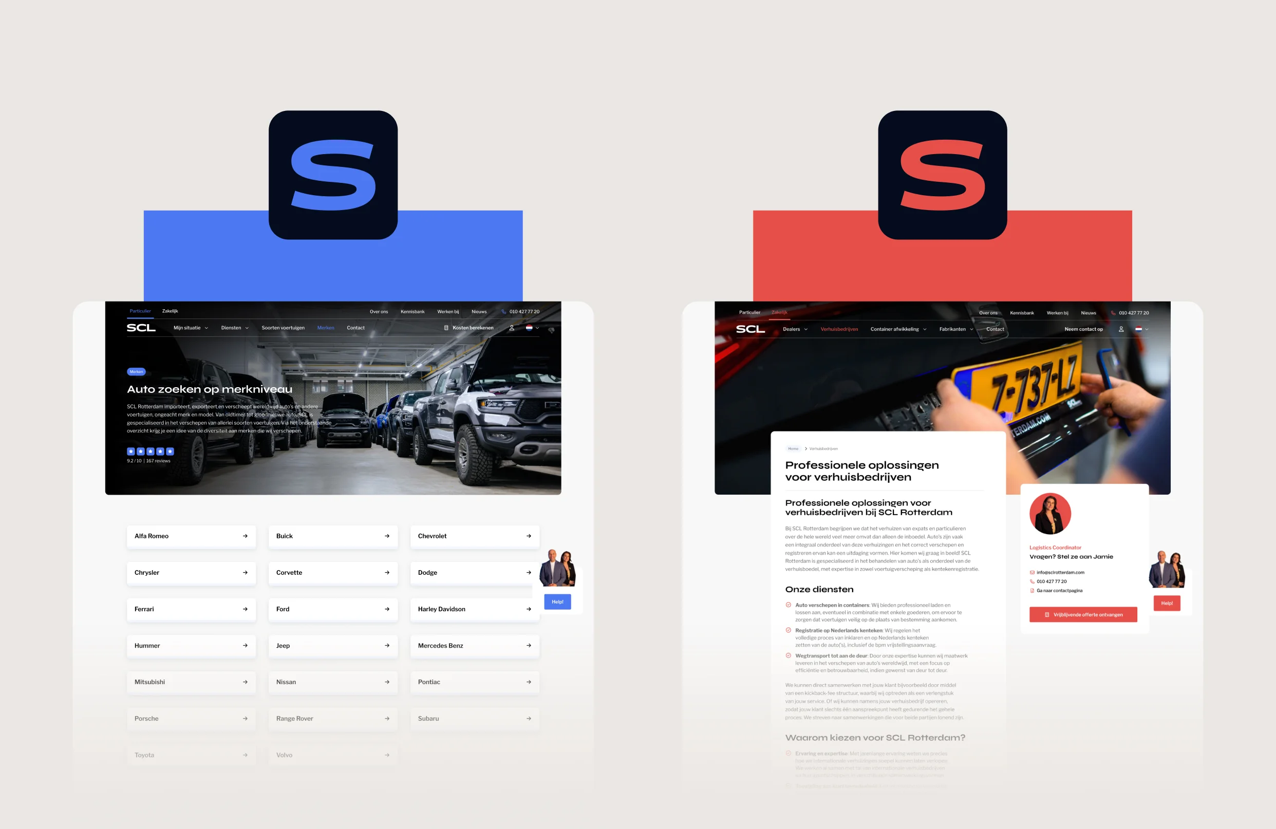 De nieuwe huisstijl van SCL onderscheid duidelijk tussen particuliere en zakelijke klanten, met een frisse blauwe stijl voor particulieren en een krachtige rode voor zakelijke klanten. Het logo heeft een eigentijdse uitstraling gekregen en door het gebruik van video en fotografie komt de website nu echt tot leven voor de doelgroep.