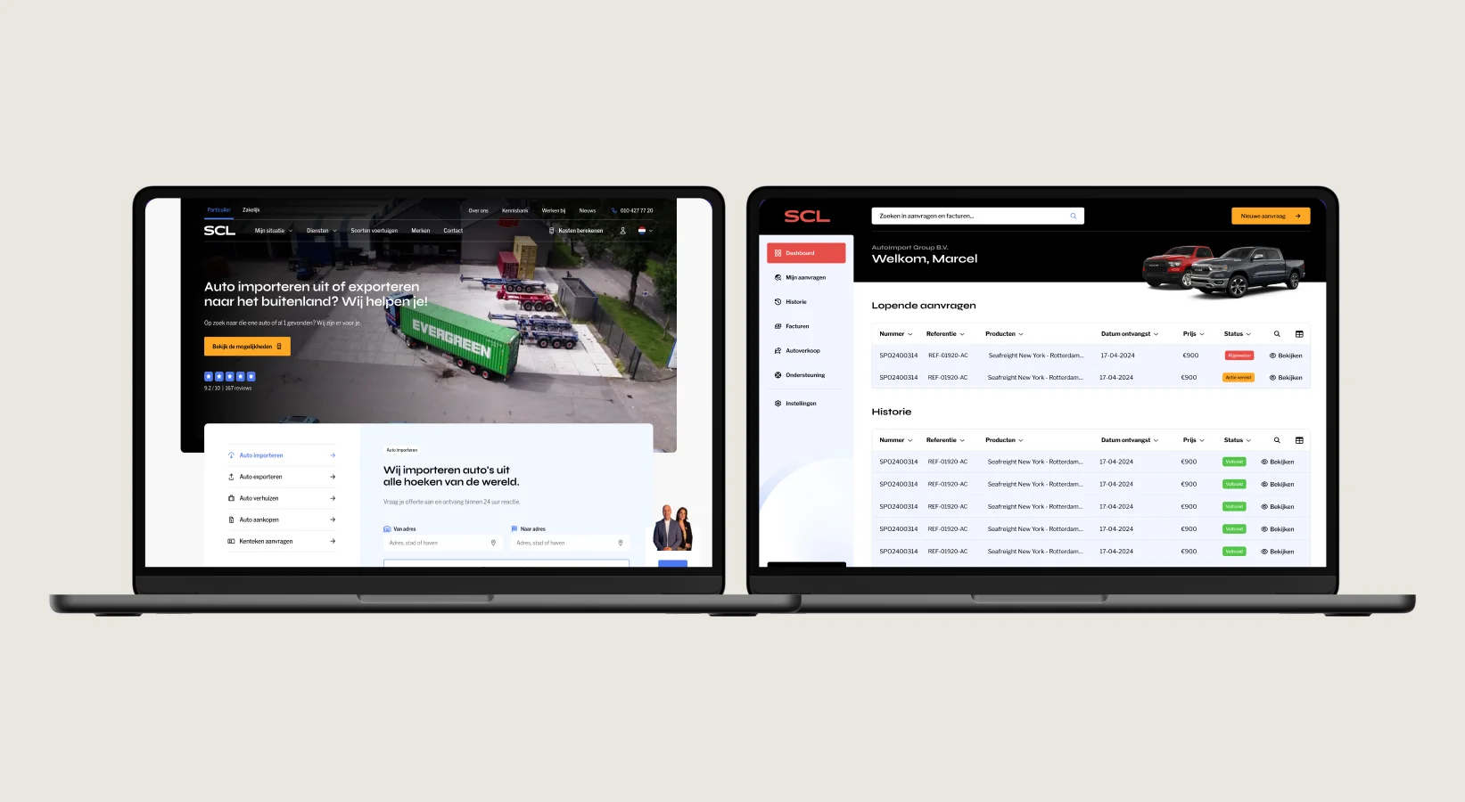 Hoe geef je een toonaangevend logistiek bedrijf als SCL Rotterdam een digitale oplossing die écht werkt? Het team van SCL zat vast in inefficiënte processen, met een wildgroei aan Excel-documenten en alternatieve werkwijzen, simpelweg omdat de bestaande software niet voldeed. Dit leidde tot tijdverlies en gebrekkige klantinformatie. Samen met SCL ontwikkelden wij een nieuw platform dat deze knelpunten aanpakt: een website en klantportaal die workflows stroomlijnen en klanten meer inzicht en transparantie bieden.