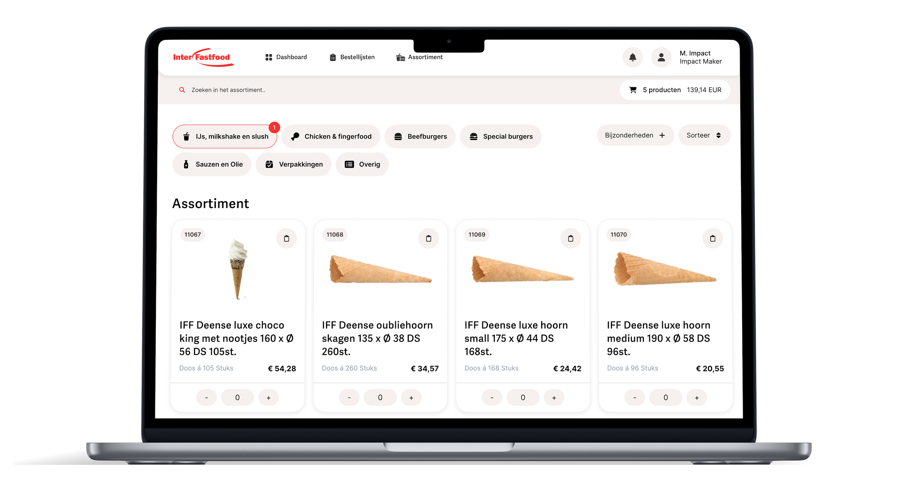Interfastfood is een verkooppartner in fastfoodproducten. Interfastfood's website raakte verouderd en paste niet meer bij haar huisstijl en merkuitingen. Daarnaast voldeed het standaard SaaS-bestelplatform wat zij gebruikten niet meer volledig aan de eisen en verwachtingen. Om deze unieke wensen te realiseren benaderde Interfastfood Digital Impact met de vraag een nieuwe website én maatwerk e-commerce portal te ontwikkelen.