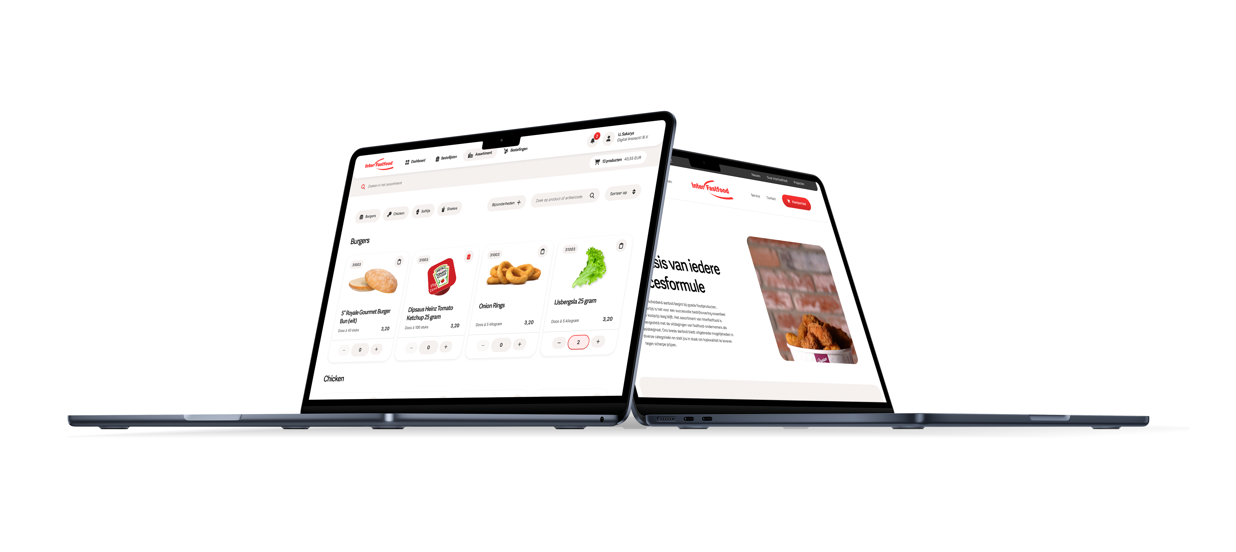 Het gloednieuwe e-commerce platform is ontworpen om de bedrijfsvoering van Interfastfood te stroomlijnen en te optimaliseren. Met een naadloze mobiele ervaring via een mobile app, kunnen klanten overal en altijd bestellingen plaatsen, voorraden beheren en gebruik maken van andere slimme functionaliteiten voor maximale efficiëntie.