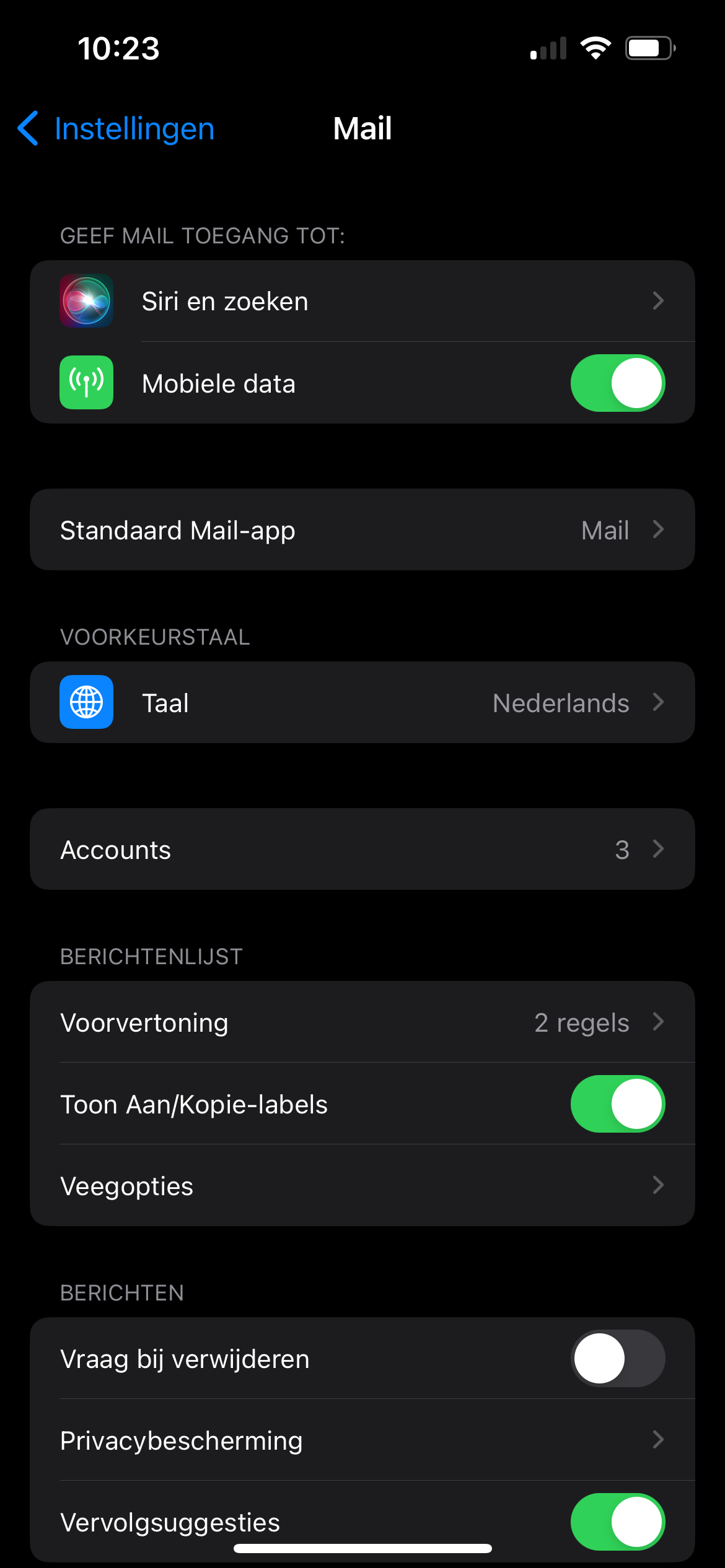 Ga in de instellingen naar Mail.